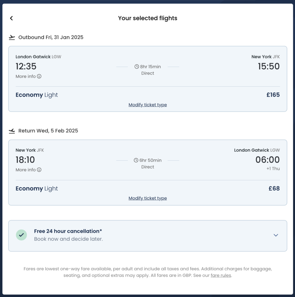 Catch this unbeatable deal and fly from London Gatwick to New York with Norse Airways for just £232! This round trip from 31st January to 5th February 2025 is your chance to experience the magic of the Big Apple this winter. Plus, other dates are available if these don’t work for you.