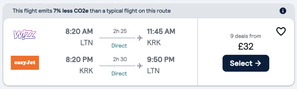 - Destination: Kraków, Poland (KRK)